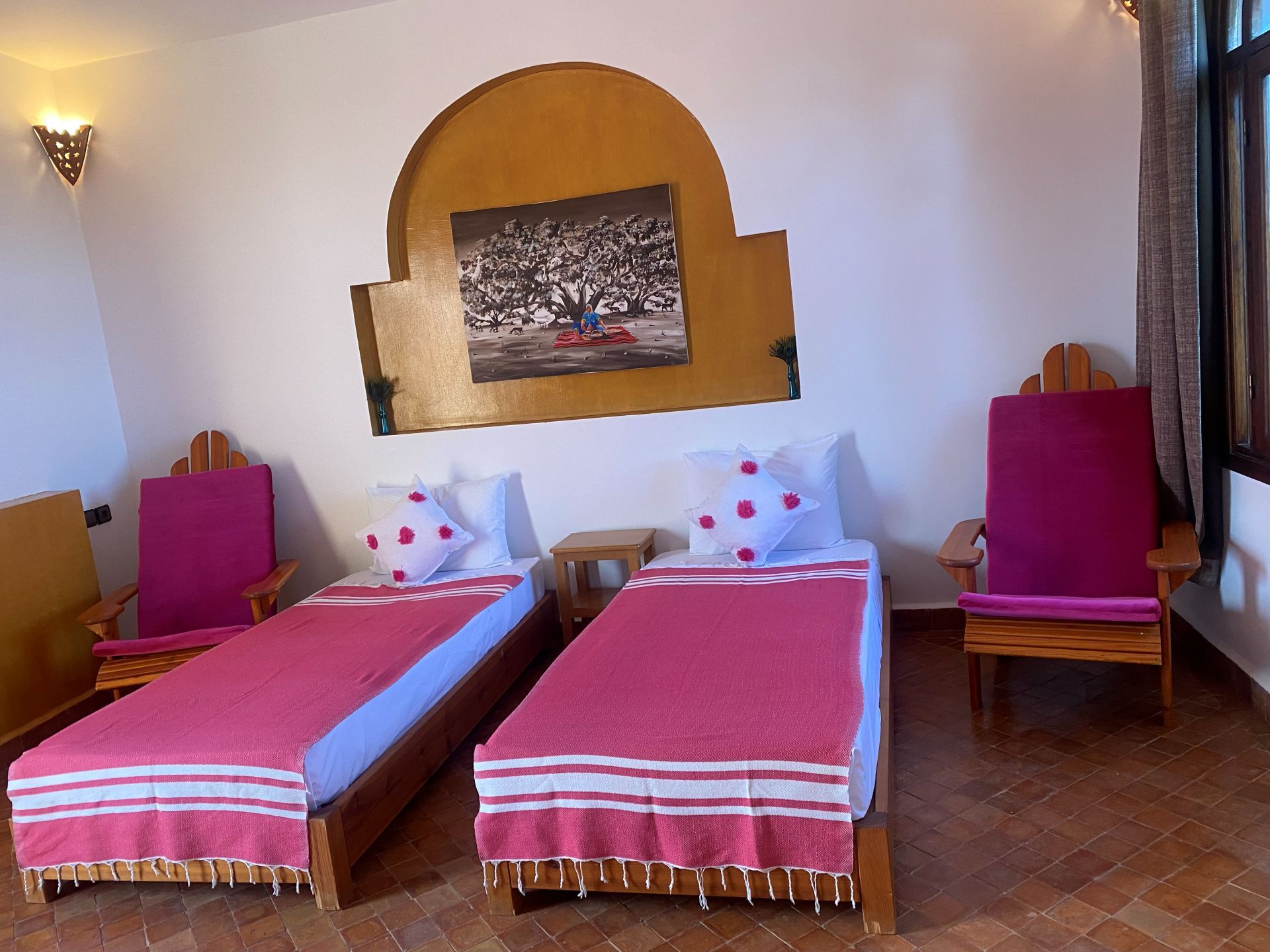 Niché en plein forêt d'Argan dans la province d'Ounagha Essaouira, le Riad les trois merveilles vous offre une aventure hors-pair et un dépaysement instantané. Un retour aux sources et à la mère nature. Relaxation, méditation, air frais, nourriture bio, tel est le cocktail offert par l'équipe du Riad. Imaginé et créé par un couple Franco-Marocain, Mouna et Daniel, riche d'une expérience de plus de 20 ans dans le monde du tourisme et l'hôtellerie, elle vous garantit expertise et bonne ambiance. Un séjour de rêve et innoubliable, une transformation, un moment de détente et de plaisir. En famille, en amoureux, entre ami(e)s ou tout seul, nous répondants aux envies de toute personne désirant passer des instants mémorables.